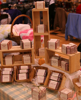 5. To make it easier for the shoppers to find a volunteer if they need help, my friend has everyone who is working wear a blue apron. This way the helpers are easier to spot. Here she is sewing the finishing touches on the aprons the "donut girls" are going to wear. Yes, they provide donuts and coffee for the shoppers!
